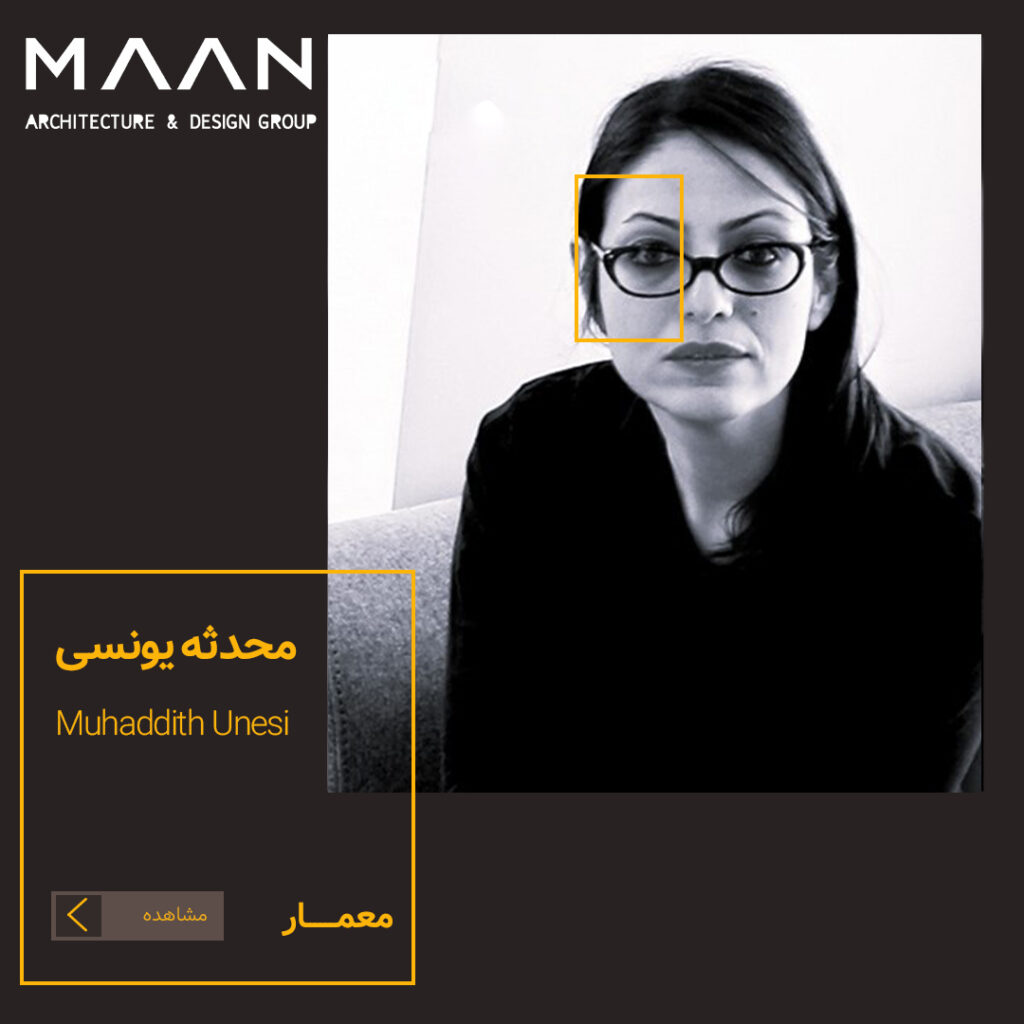 محدثه یونسی، مؤسس و طراح ارشد دفتر معماری “مان” ، فارغالتحصیل کارشناسی ارشد معماری میباشد. وی فعالیت حرفهای خود را از سال ۱۳۸۴ با تدریس در دانشکدههای معماری آغاز کرد. نهایتاً در سال ۱۳۹۴، دفتر معماری مان را با تمرکز بر طراحی معماری، شهرسازی و اجرای پروژهها تأسیس نمود.