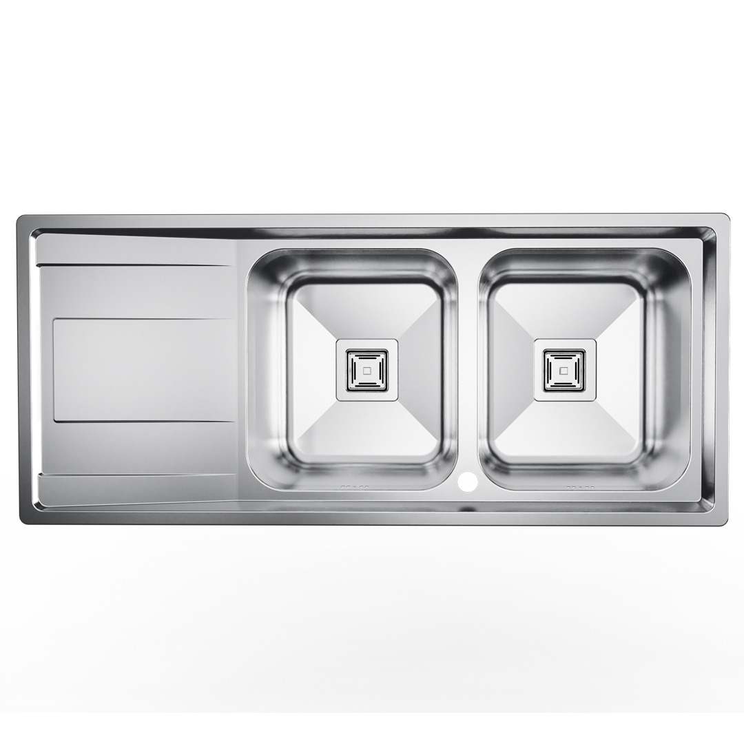 سینک 8122 دارای دو لگن است که بسته به نیاز و سلیقه مشتری میتواند در سمت چپ یا راست قرار گیرد، تا هماهنگی کامل با دکوراسیون کابینتها فراهم شود. طراحی مینیمال سینی این سینک، ظاهری مدرن و جذاب به آشپزخانه میبخشد.