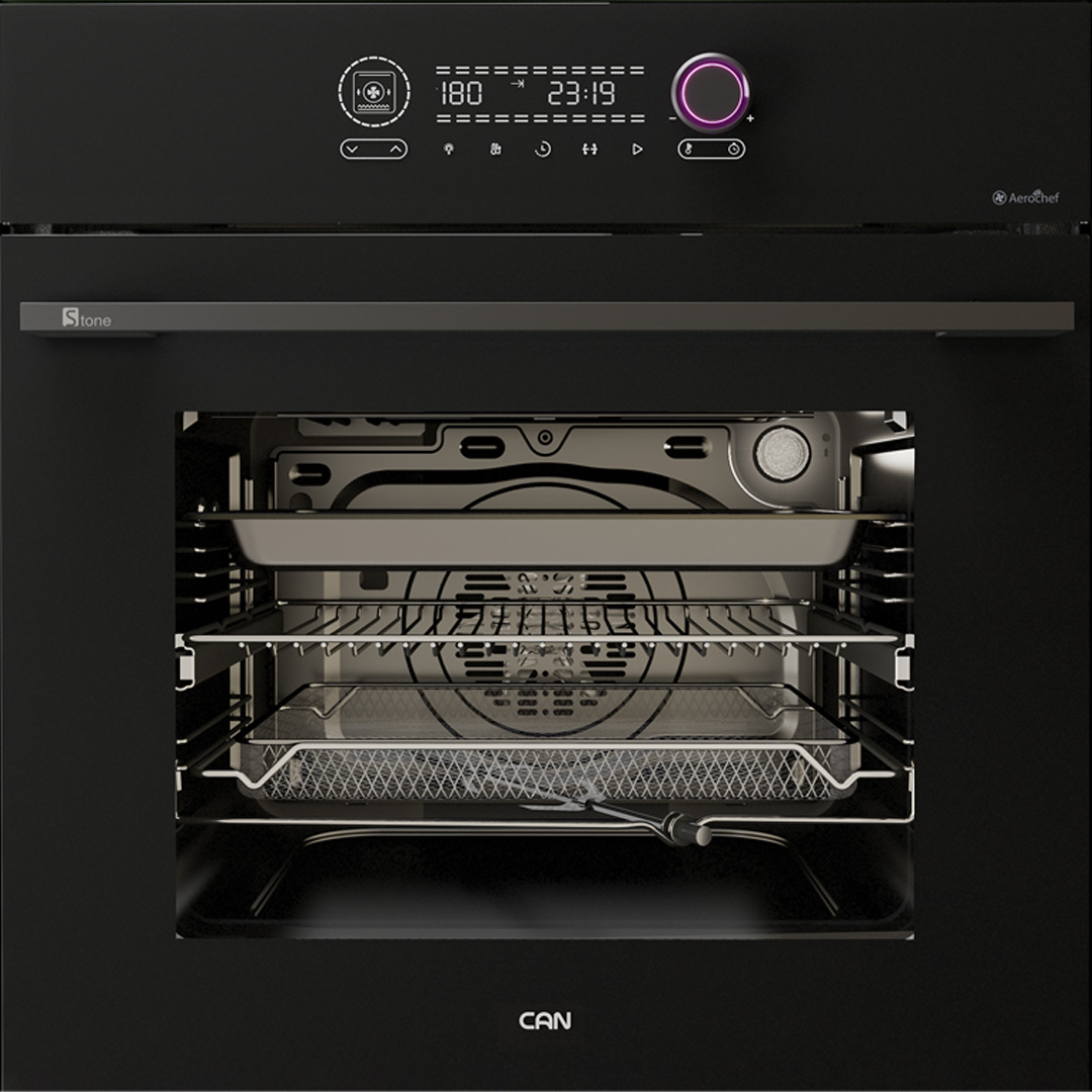 فر کن مدل استون (Stone) با طراحی مشکی مدرن، ۱۴ برنامه پخت، هواپز و سنسور گوشت، یکی از کاملترین فرهای ۶۵ لیتری برای آشپزخانههای امروزی است.